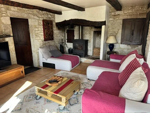 The cozy living room is the center of the house. The other rooms are located around the living room. A practical layout that allows you to easily reach all rooms. During the fall/winter period, you can warm up by the woodburning stove. The wood will be neatly stacked next to the stove in fall or wintertimes. If you need some extra wood, you can find it outside under a canopy next to the kitchen. There is also a flat screen TV on which you can log in with your own streaming subscription or connect to a laptop or game console. Do you prefer not to watch TV? For enthusiasts, there are a lot of board games ready in the cupboard under the TV, a fun activity for the children.